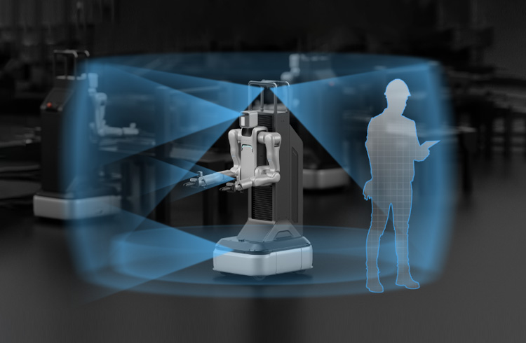 360°激光雷達+4顆AI視覺傳感器+2顆六維力覺傳感器等多傳感器融合感知,實現毫秒級感知與智能避障。